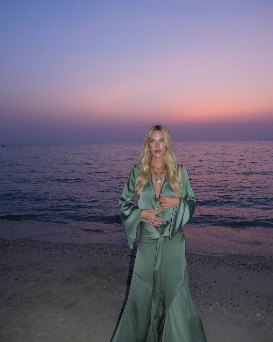 At the heart of JANTHEE is versatility. A single dress transforms with the right detail, a sweep of gold jewelry, a draped shawl, a slicked-back bun. Sets move with intention: skirts that flow effortlessly into midnight, tops that bare just enough. It’s about confidence, not compromise. Comfort and allure designed to coexist.